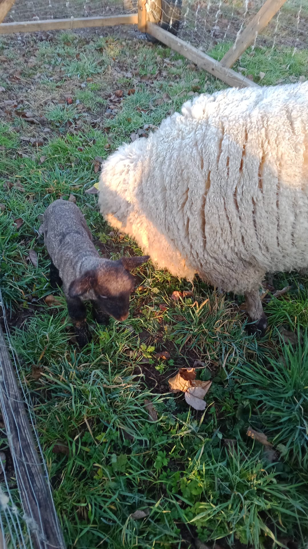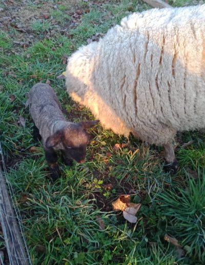 Seit 2023 haben wir drei Schafe auf unserem Betrieb. Die Schafe, der Rasse Shropshire, treiben wir nach holistischem Weidemanagement um. So bekommen sie jeden zweiten Tag einen neuen Bereich zum Grasen zur Verfügung. Durch den Kot und Urin der Schafe, sowie das „Anfressen“ des Grases, durch das der Wachstumszyklus angeregt werden soll, hoffen wir, mehr Biologie in die Anlagen zu bringen und mit besserem Bodenleben auch bessere Früchte zu erzeugen.