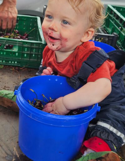 Kirschen: Im Jahr 2014 haben wir unsere Kirschanlage gepflanzt. Mittlerweile befindet sich die Anlage im Vollertrag. Kirschen erfreuen sich sehr großer Beliebtheit zum Kauf oder auch zum Selbstpflücken. 😊